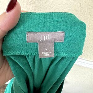 J Jill Womens Large Kelly Green Button Roll Tab Sleeve Tunic Shirt Top Peasent