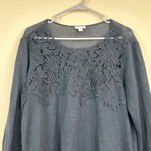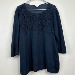 J. Jill Women's Large Navy Lightweight Breathable Linen Blend Top Sweater