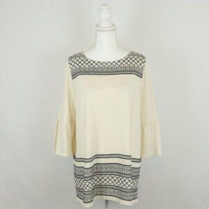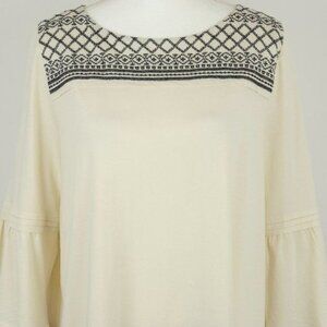 J. Jill Women's Large Petite Cream Black Embroidered Bell Sleeve Knit Blouse