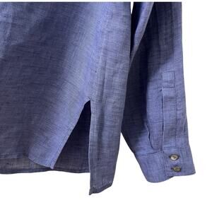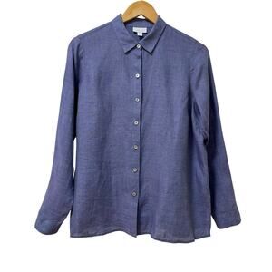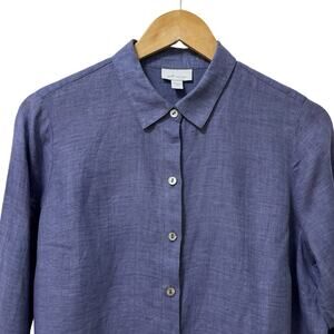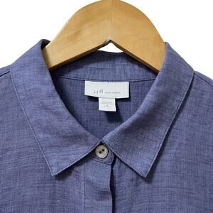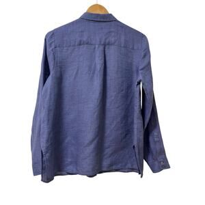 J Jill Womens Linen Button Up Long Sleeve Shirt Size SP Blue Travel Coastal