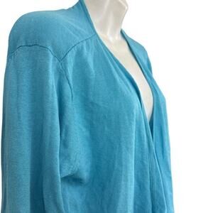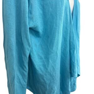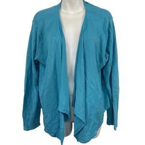 J Jill Womens Linen Cotton Blend Open Blue Cardigan Waterfall Sweater Open sz L
