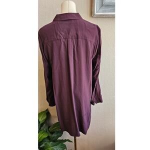 J. Jill Women's Long Sleeve Soft Button Front Tunic Shirt Top Size L Deep Purple