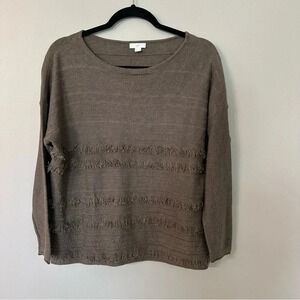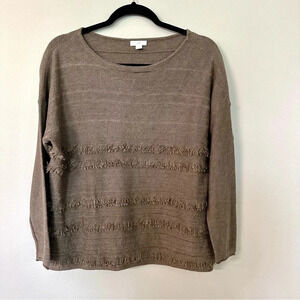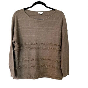 J. Jill Women’s Long Sleeve Taupe Rounded Neck Fringe Detail Sweater Sz XSP GUC