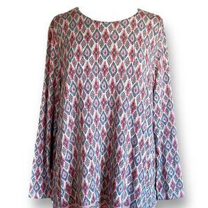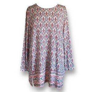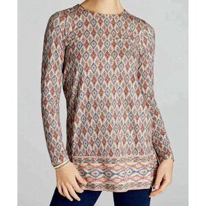 J Jill Womens Luxe Supima Forward Seam Tunic Top Plus Sz 1X Ikat Print Boho