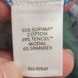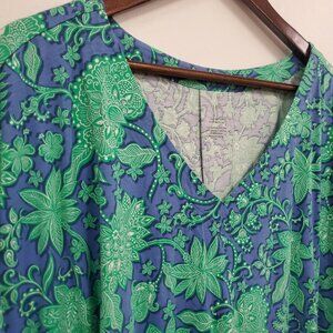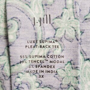 J Jill Womens Luxe Supima Pleat Back Tee Size 3X Blue Floral Everyday Modest