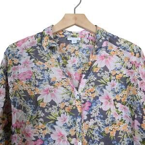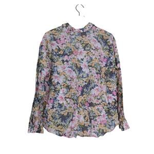J. Jill Women's M Silk Blend Floral Button Front Blouse