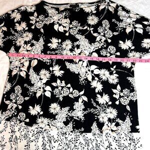 J. Jill - Women's M Tunic Top Stretch Black White Brown Floral Crewneck Petite
