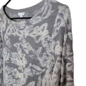 J. Jill Womens MP Gray Floral Long Sleeves Wool Blend Pullover Sweater NWT