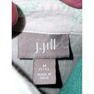 J. Jill Womens Med White Aqua Blue Paisley Linen 3/4 Sleeve Pintuck Tunic Shirt