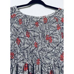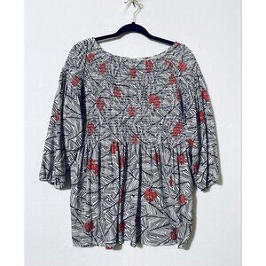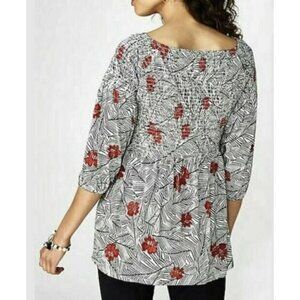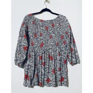 J Jill Womens Medium Floral Smocked Tunic Top 3/4 Sleeve Knit Stretch Boho