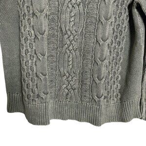 The J. Jill Women's Medium Olive Green Mixed Knit Pullover Sweater is a classic and versatile addition to any wardrobe. Made from 100% cotton in a chunky knit style, this sweater features a round neckline, long sleeves with dolman sleeves, and a solid green color. With a relaxed fit and medium size, it is perfect for casual, workwear, and business occasions. The sweater's heavy weight and stretch provide comfort and style, making it ideal for layering during the winter, fall, and spring seasons. Ideal for a preppy coastal look, this sweater from J. Jill is a timeless staple piece.