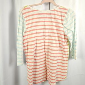 J Jill Womens Medium Petite Colorblock Striped V-Neck 3/4 Button Sleeve Blouse
