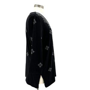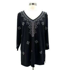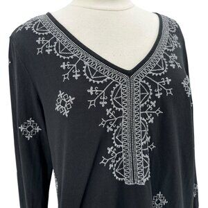 J. Jill Womens Medium Tunic Top Embroidered Black Gray Boho V-Neck