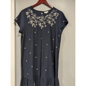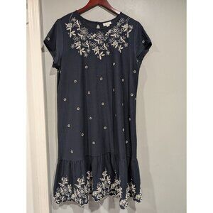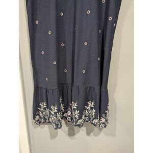 J. Jill Women's Midnight Blue Navy Floral Embroidered Drop Waist Dress Sz M. Please note all measurements are approximate.