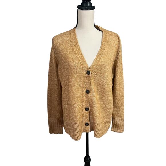 J. Jill Womens Mustard Yellow Marled Knit Cardigan Sz L Minimalist Closet Staple