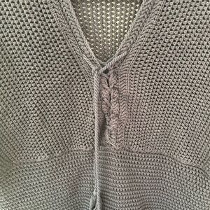 Unlined open knit, relaxed fit, adjustable lace up front