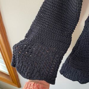 J Jill Womens Navy Blue Open Knit Pullover Sweater Small Crochet Cover Up