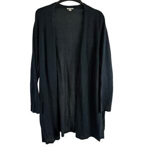 J Jill Women’s Navy Linen Blend Longline Open Cardigan Sweater Size 3X Classic