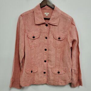 J Jill Womens Office Career Linen Button Up Jacket Size L Red Capsule Coastal