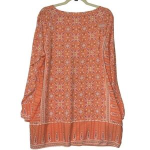 * J Jill Womens Orange Floral Paisley Print 3/4 Sleeve Boho Prairie Blouse Sz. L.