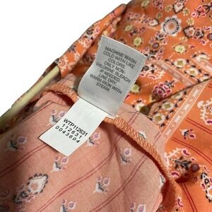 J Jill Womens Orange Floral Paisley Print 3/4 Sleeve Boho Prairie Blouse Sz. L