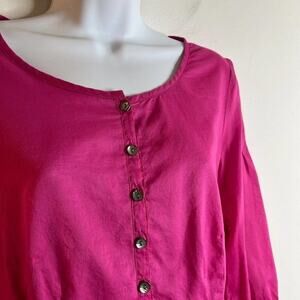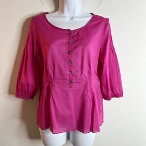 J. Jill Women's Peplum Top Size XS Pink 1/4 Button 3/4 Sleeve Lightweight Blouse