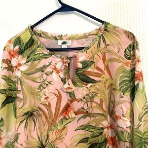 J Jill Womens Pink Floral Jungle Leaves Blouse Top Size Large
