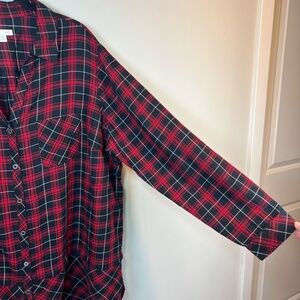 J. Jill Womens Plaid Button Up Shirt Blouse Red Black Long Sleeve Tunic VNeck 2X