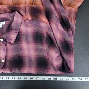 J Jill Womens Plaid Button Up Tunic Top Large Pink Ombre Tiered Country Western