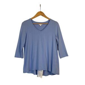 J. Jill Women's Pleat-Back Eyelet Cotton Modal V-Neck Pullover Top Size M Blue
