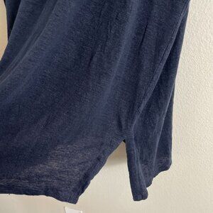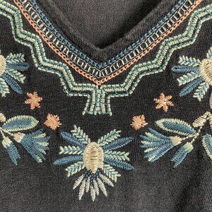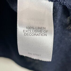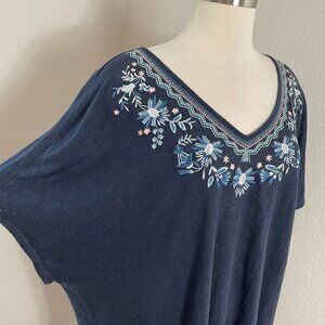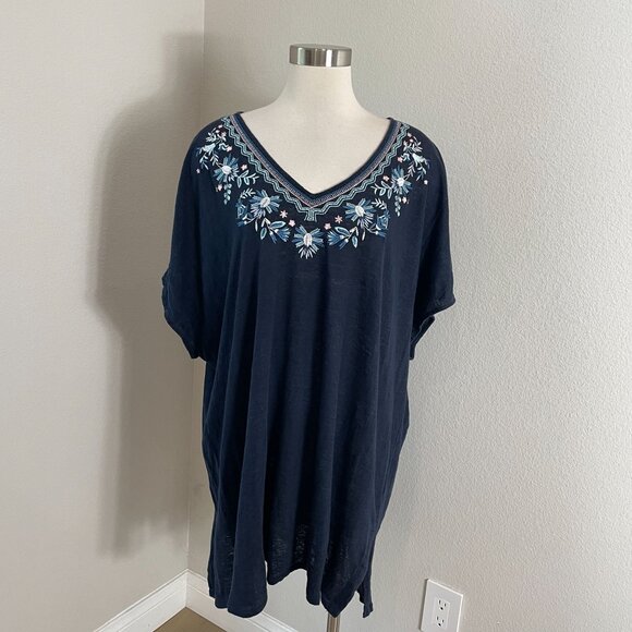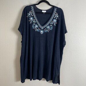 J Jill Womens Plus 4X Navy Blue 100% Linen Embroidered Floral Tunic Top V Neck