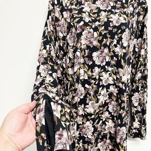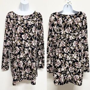 J Jill Womens Plus Dark Floral Pattern Luxe Supima Split Sleeve Tunic Size 3X