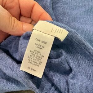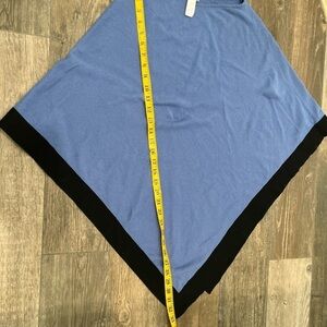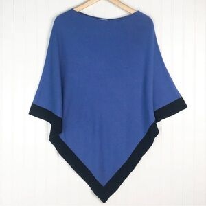 J. Jill Womens Poncho Sweater Blue Black Trim Tight Knit Pullover One Size