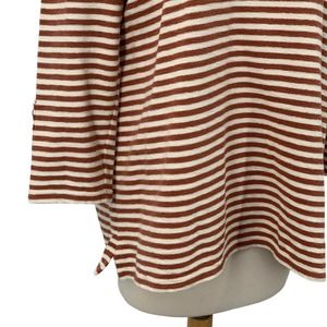 J. Jill Women's Pullover 3/4 Sleeve Square Neck Brown/Cream Striped Top w/decorative buttons down sleeve ends, slits at sides in a Size XL, made in Vietnam. (WC0H8)