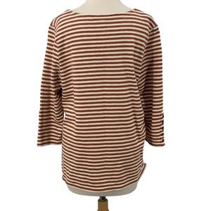 J. Jill Women's Pullover 3/4 Sleeve Square Neck Brown/Cream Striped Top XL