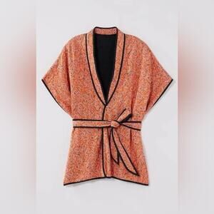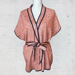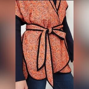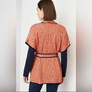 J Jill Women’s Quilted Ruana Kimono Belted Jacket S/L Orange Paisley Cottagecore
