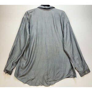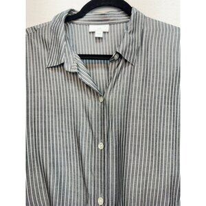 J. Jill Women's Rayon Button Down Shirt Stripe Size L White Gray Long Sleeve