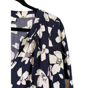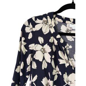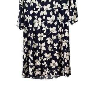 J. Jill Women's Rayon Light Weight Navy 3/4 Sleeve Pocket Floral Dress Size XS