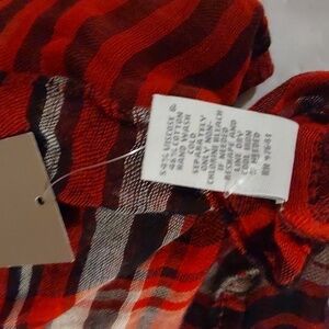 J Jill Womens Red Black Plaid Infinity Scarf Reverseable Stripes New!