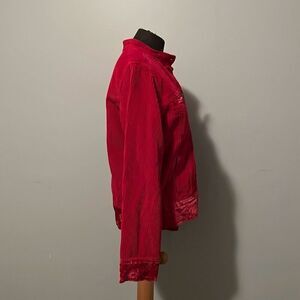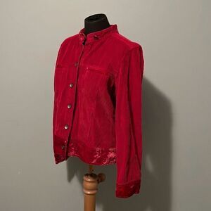 J. Jill Women’s Red Velvet Long Sleeve Button Up Corduroy Jacket
