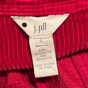 J. Jill Womens Red Cotton Long Sleeve Button Up Velvet Trim Corduroy Jacket Small