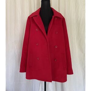 J Jill Womens Red Wool Blend Peacoat Jacket Med Classic Double Breasted Winter