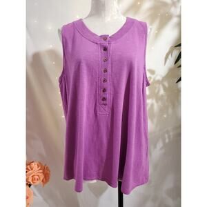 J Jill Womens Rib Trim Henley Tank Top Size XL Pink Soft Cotton Tencel Modal