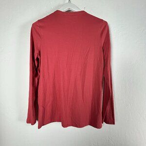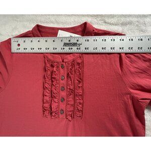 J. Jill Womens Ruffle Front Henley Tee Long Sleeve Shirt Top Currant Medium New