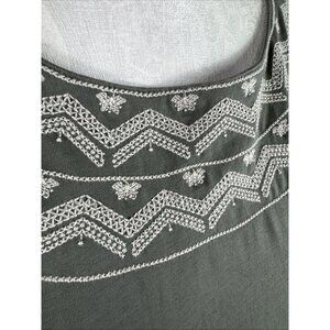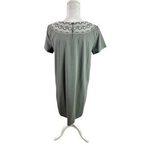 J Jill Women's S Embroidered Neckline Jersey Shift Dress Sage EUC