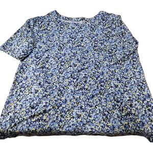 J. Jill luxe Supima elbow-sleeve tee in women's size Medium. Absolutely mint condition with no visible indications of wear. Ditzy floral print in a vibrant blue, turquoise, and yellow color way. Wonderfully soft texture. Measures 22" armpit to armpit and 24" back of collar to bottom hem.