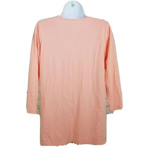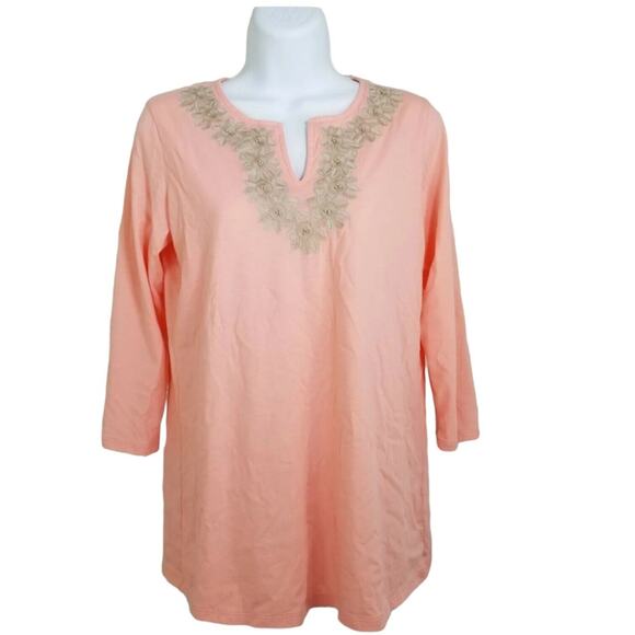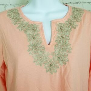 J Jill Womens Shirt Small Embroidered Long Sleeve Pink Peach Soft Linen Top Boho