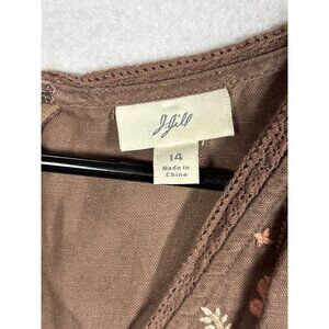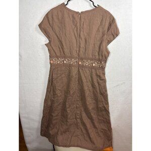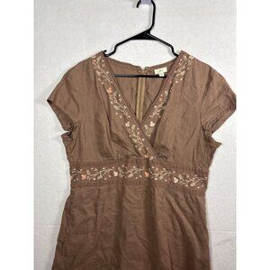 J. Jill Womens Short Sleeve Embroidered Brown Dress 100% Linen Size 14