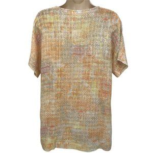 J. Jill Womens Short Sleeves Linen Blend Multicolor Pullover Blouse Top XS/PS