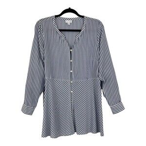 J. Jill Womens Size Small Blue White Stripe Button Front Tunic top
